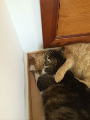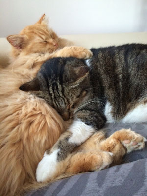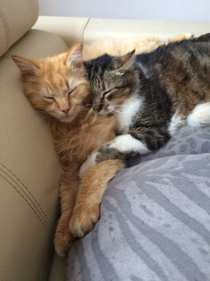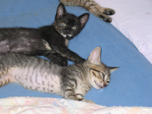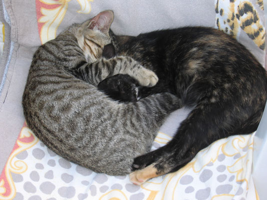 Hochzeitstag, waren sie endlich wieder vereint. Sie schliefen alle drei zusammen gekuschelt in ihrem neuen Bett/ Pappkarton. Ein schöneres Hochzeitsgeschenk konnte man mir kaum machen. Aber das