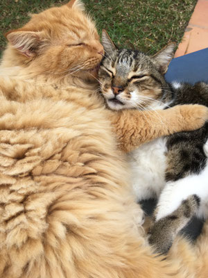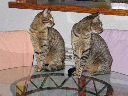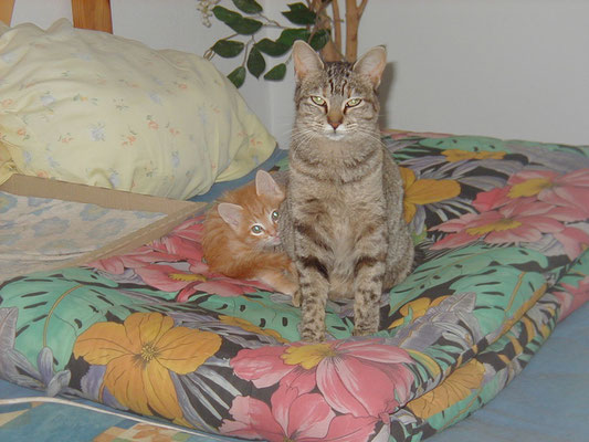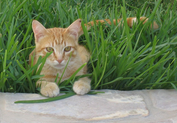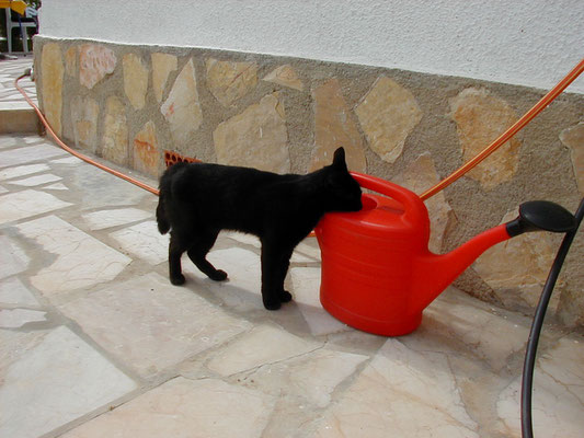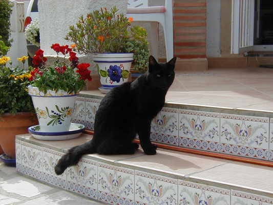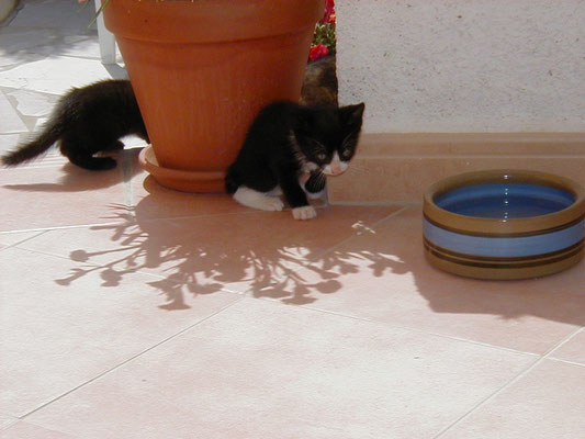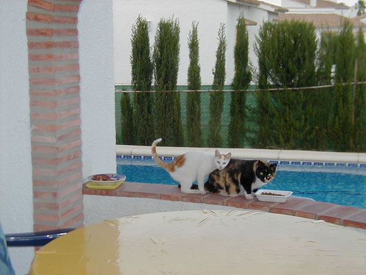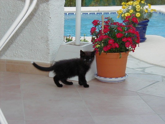 Es war im Sommer 2002, als zwei Katzen bei uns im Garten auftauchten. Eine ganz schwarze und ein ziemlich dicker Tiger. Wie ich von unserem Poolpfleger erfuhr, kamen sie beide von einer