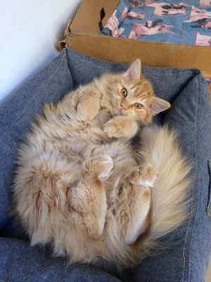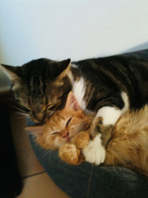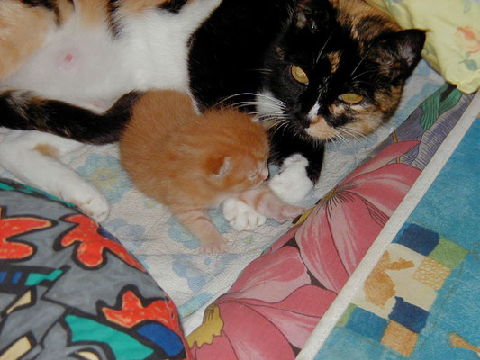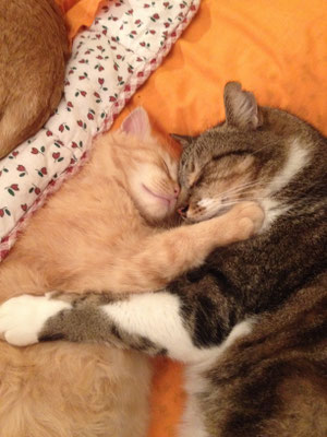 Den Kleinen legte ich vorsichtig hinein. Er schlief sofort ein. Wohl total geschafft von seinem ersten Ausflug. Am nächsten Morgen lagen Paula und der Kleine ganz entspannt zusammen und