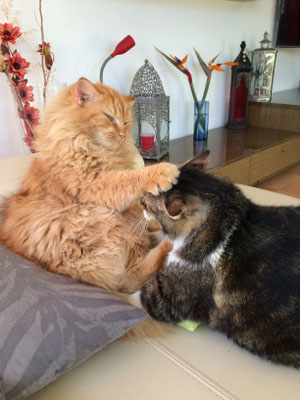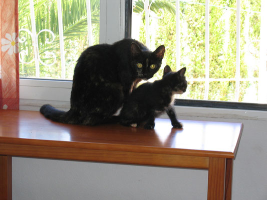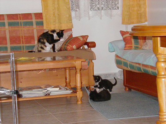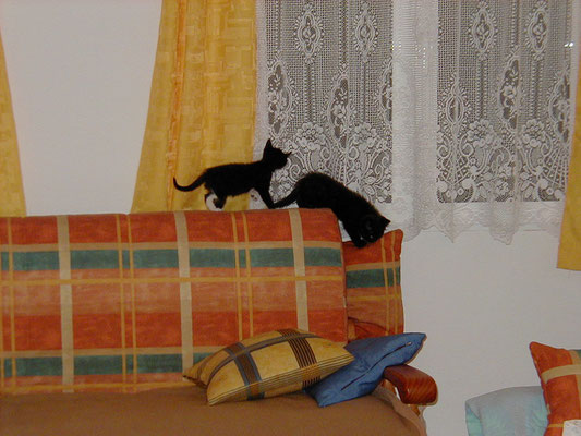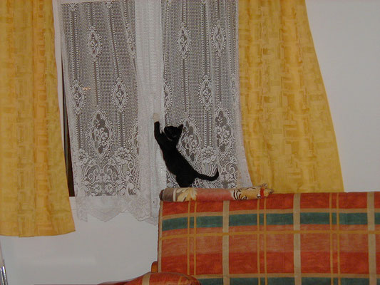 herum. Das heißt, nur die beiden Kleinen. Paula saß meistens majestätisch daneben und beobachtete ihre Kleinen, wie sie zum Beispiel die "wunderschönen, teuren" Gardinen hoch kletterten. Aber