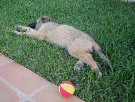 Hundeschule bei Monika Manz in Beniarbeig. Natürlich hat er diese als Klassenbester abgeschlossen. Hat aber nicht lange gehalten, obwohl ich auch danach immer wieder Übungen mit ihm machte.