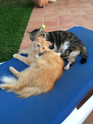 So, und hier noch eine Kurzfassung der letzten 5 Jahre, von Oktober 2015 bis heute, August 2020: Das Katzenhotel existiert immer noch, hat aber inzwischen bedeutend weniger Gäste. Anton ist der letzte Kater, der Ende 2016 neu eingezogen ist, sowie auch Billy, unser neuer Hund, den wir nach Bennis plötzlichem und unerwartetem Tod im Februar 2017, aus dem Tierheim Denia zu uns geholt haben. Alle anderen Katzen und auch Benni, die 2015 noch bei uns waren, sind inzwischen leider gestorben. Aber wir hatten eine sehr schöne Zeit mit allen. Seit ein paar Wochen ist leider auch Anton gestorben. Er war sehr eng mit Leo befreundet. Für Leo war es der zweite, schmerzhafte Verlust eines dicken Freundes in kurzem Zeitabstand. Vorher hatte er Attila verloren. Und nicht nur für Leo waren es große Verluste, auch für uns. Jetzt sind nur noch Leo und Julia bei uns. Diese Beiden machen uns immer noch sehr große Freude, obwohl Julia im Moment recht selten kommt und Leo leider auch schon wieder sehr krank ist. Ich hoffe, dass Julia nur den Sommer genießt und im Herbst, wenn die Tage und Nächte wieder kühler werden, wieder öfters bei uns ist. Auch für Leo hoffe ich, dass er uns noch einige Zeit und ohne Schmerzen erhalten bleibt. Wir werden die Zeit auf jeden Fall, solange es geht, gemeinsam mit Leo, Julia und Billy genießen.