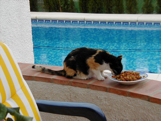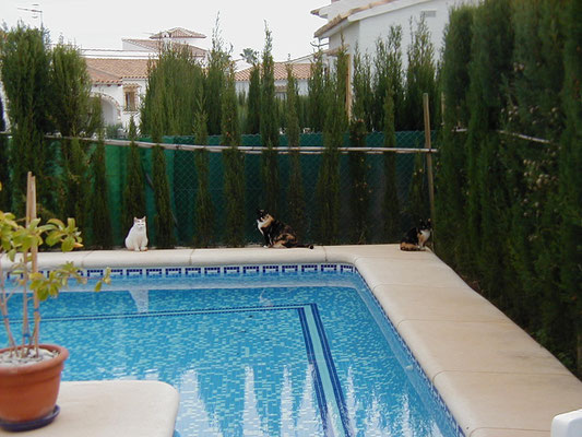 Paula mit ihren ersten beiden auftauchte. Den Poolrand hatten sie sich gut ausgesucht, weil es unter dem Rand hohle Stellen gab, wo sich die Katzen in Ruhe aufhalten konnten, ohne das sie gesehen