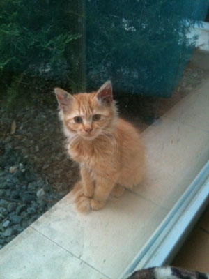 Futter hatte er sehr schnell und wahrscheinlich auch mit sehr viel Genuss aufgefuttert. Die beiden nahmen ihn erstmal mit zu sich nach Hause. Da liefen zwar auch schon eine Menge Katzen umher,