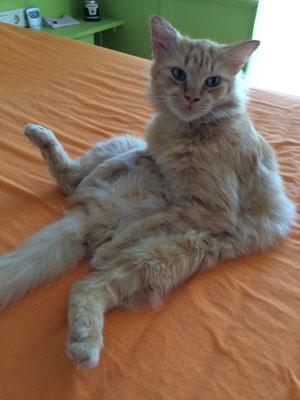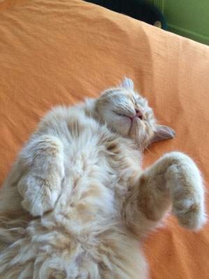 spüre ich seine Knochen nicht mehr, und sein Fell ist noch länger und voller geworden. Seit dem 20. Januar 2014 singt er jetzt mit den anderen Katern im Knabenchor.