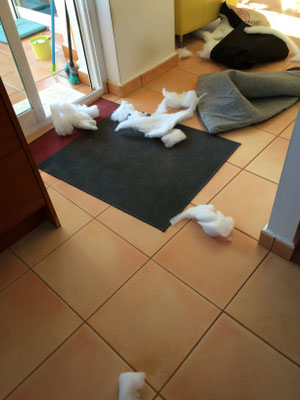 auswandern. Der Garten sah danach immer aus wie nach einem Bombenangriff. Es gibt natürlich Beweisfotos. Drinnen räumte er aber auch auf. Kissen und Decken schleppte er mit viel Spaß nach