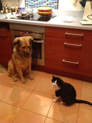 neuen Hund. Er war sichtlich glücklich. Als wir zuhause ankamen und er das Grundstück betrat, war keine Katze mehr in Sicht. Diese kamen die nächste Zeit nur noch reingerannt zum Fressen und