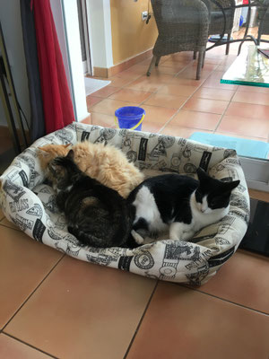 Mittlerweile geht es aber schon ganz gut. Seine Finca konnten wir auch wieder auflösen. Garten und Haus bleiben inzwischen unversehrt, auch wenn wir nicht zu Hause sind, und die Katzen haben