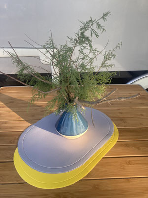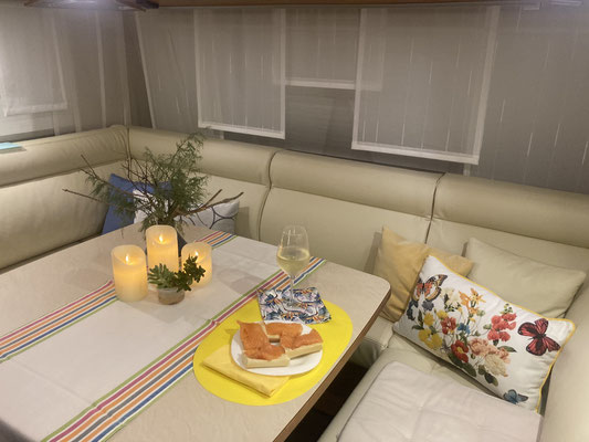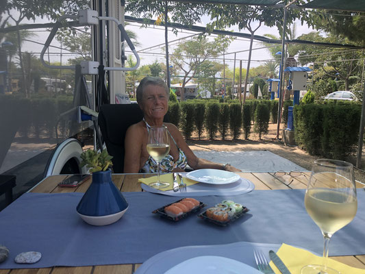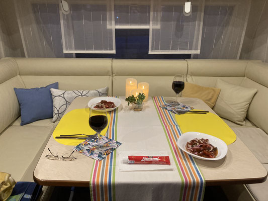 kam, nahmen und genossen wir erstmal unseren Aperitif, denn unsere kleine Terrasse hatten wir uns, so gut wir unter diesen Umständen konnten, gut hergerichtet und die Sonne schien ja auch wieder.