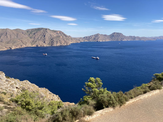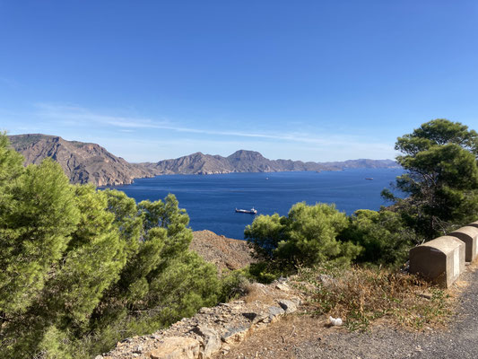 beschreiben. Da die Bateria zu Cartagena gehört, konnte man in der einen Bucht, auf die man gucken konnte, etliche Frachtschiffe auf Reede liegen sehen. Aber auch die vielen anderen