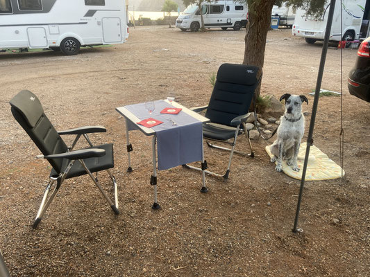 nur Staub, und das auch nur, wenn Billy durch den Kies rannte. Aber wo gibt es den nicht. Außerdem waren wir ja schon fast in der Wüste. Der Campingplatz war übrigens sehr groß und höchstens bis