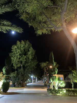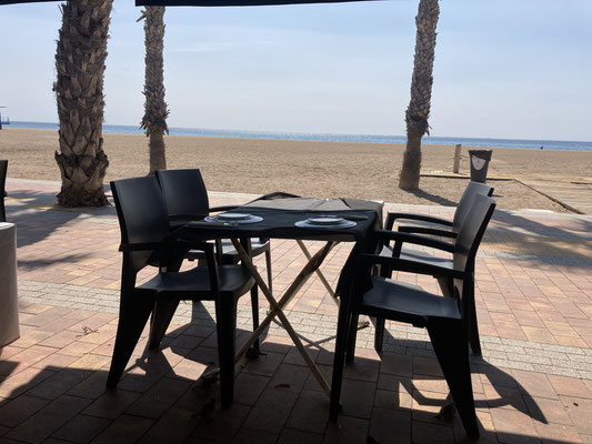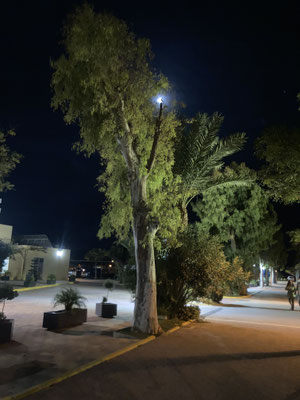 direkt angrenzenden Strandpromenade. Hier gab es auch mehrere Terrassenrestaurants. Das Restaurant sowie der Supermarkt vom Platz hatten bereits geschlossen, was aber bei der Vielzahl von