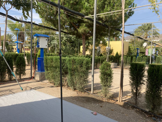 Punkt, der uns nachhaltig störte, war, der fehlende Wasseranschluß. Aber jetzt hatten wir erstmal alles soweit vorbereitet, das kleine Vordach, den kleinen Teppich, darauf Tisch und Stühle. Billy