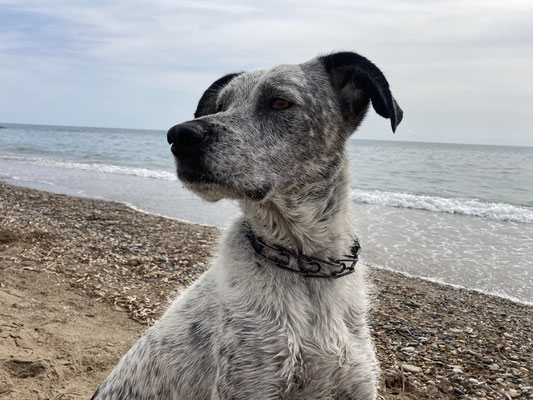 Platz war Leinenzwang. Einige Tage gingen wir auch, mit Strandstuhl, direkt ans Wasser. Das war für ihn auch ein Erlebnis. Er spielte mit den Wellen und rannte immer rein und raus. Zwischen durch